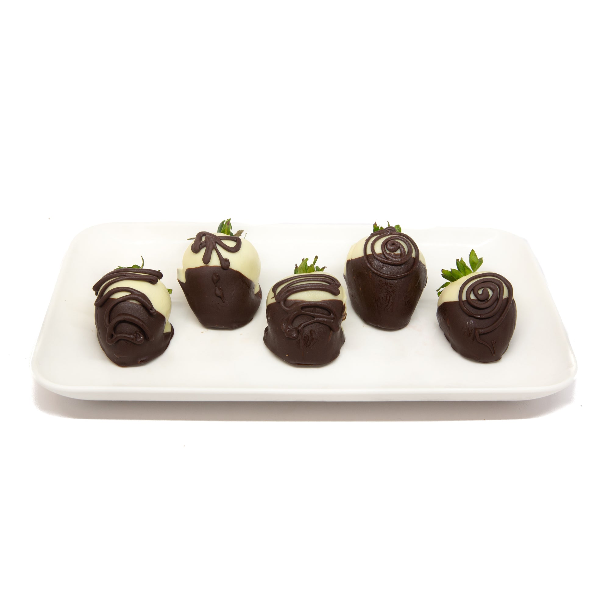 Strawberries, double dipped in white and dark chocolate