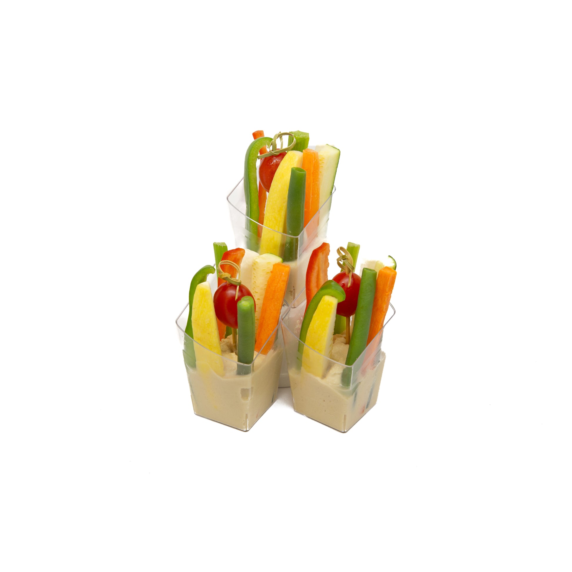 Portable crisp, crunchy vegetables served with our homemade hummus