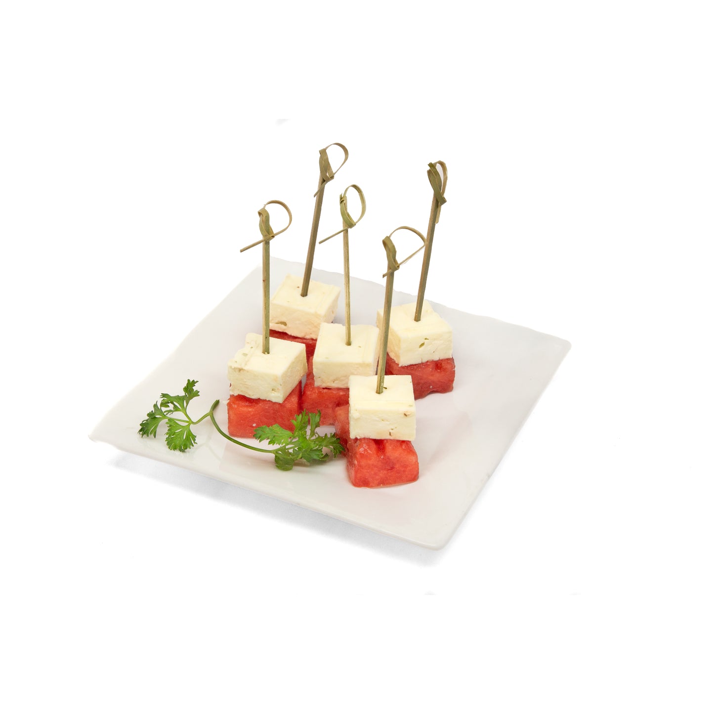 Watermelon cubes with feta and a touch of citrus and basil (seasonal)
