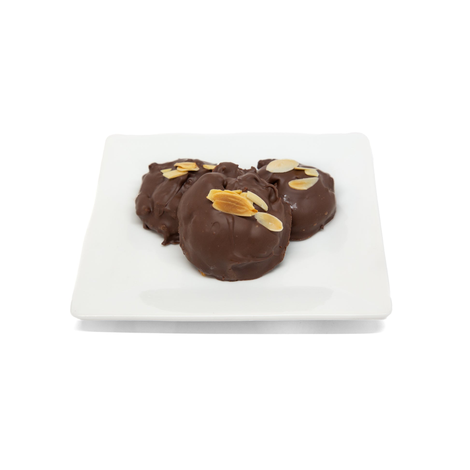 Mounds of shredded coconut coated in dark chocolate. 2pp.